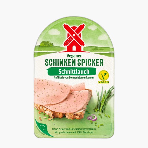 Wer den Veganen Schinken Spicker mit Schnittlauch zum ersten Mal probiert, kann kaum glauben, dass er rein pflanzlich ist. Denn er sieht aus wie eine Schinkenwurst und schmeckt auch so: Herzhaft lecker – mit einer frischwürzigen Schnittlauchnote.